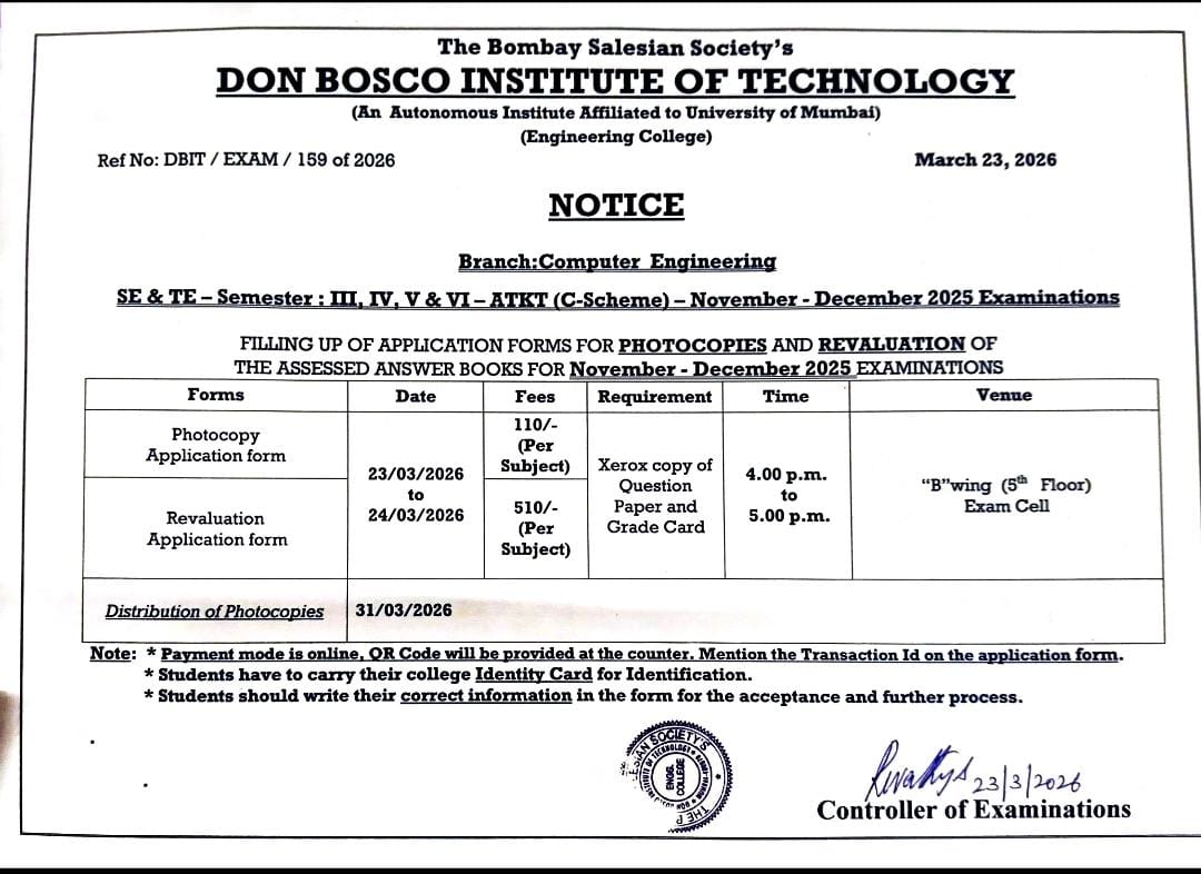 Revaluation & Photocopy application form for December 2023 Examination (Mech and EXTC)