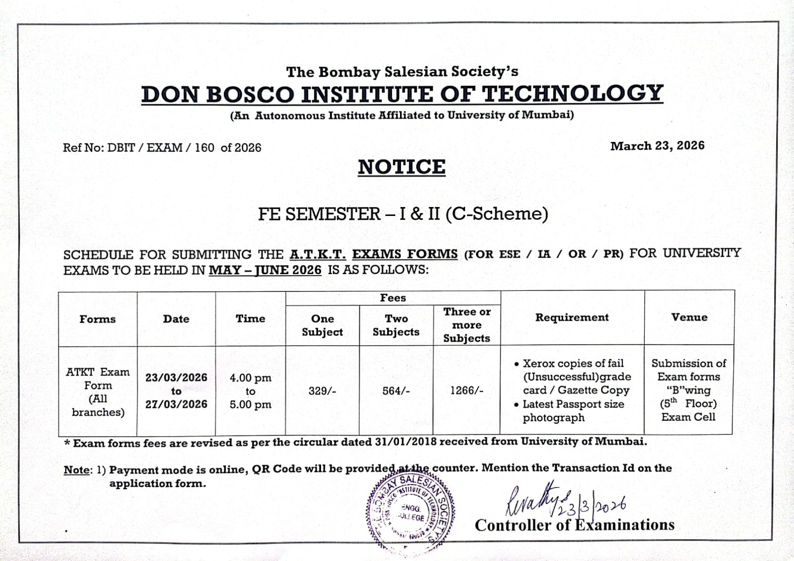 FE - ATKT Exam Forms Notice